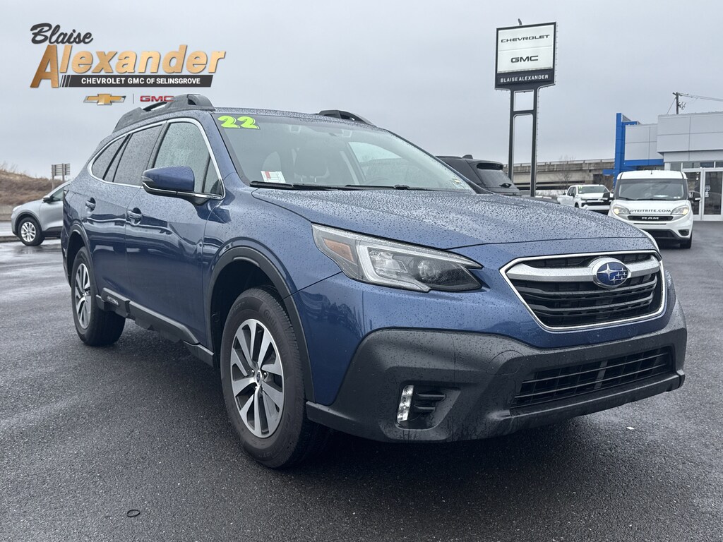 Abyss Blue Pearl 2022 Subaru Outback Premium AWD CVT Lineartronic 2.5L 4-Cylinder DOHC 16V 4 WHEEL DRIVE/ALL WHEEL DRIVE, SERVICED HERE, FREE LIFETIME STATE INSPECTIONS, ONLY AT BLAISE ALEXANDER CHEVY GMC OF SELINSGROVE, 6 Speakers, Air Conditioning, Alloy wheels, AM/FM radio: SiriusXM, Power driver seat, Rear window defroster, Remote keyless entry, Steering wheel mounted audio controls.