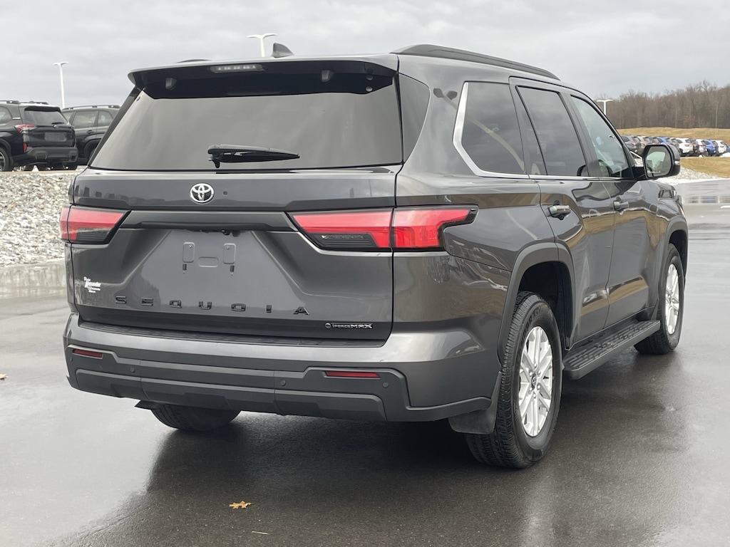 New Price! Magnetic Gray 2025 Toyota Sequoia SR5 4WD 10-Speed Automatic V6 Hybrid 4D Sport Utility, V6 Hybrid, 10-Speed Automatic, 4WD, Magnetic Gray, Black Leather, ABS brakes, Active Cruise Control, Alloy wheels, Electronic Stability Control, Front dual zone A/C, Heated door mirrors, Heated Front Seats, Heated front seats, Illuminated entry, Low tire pressure warning, Power moonroof, Remote keyless entry, Traction control.